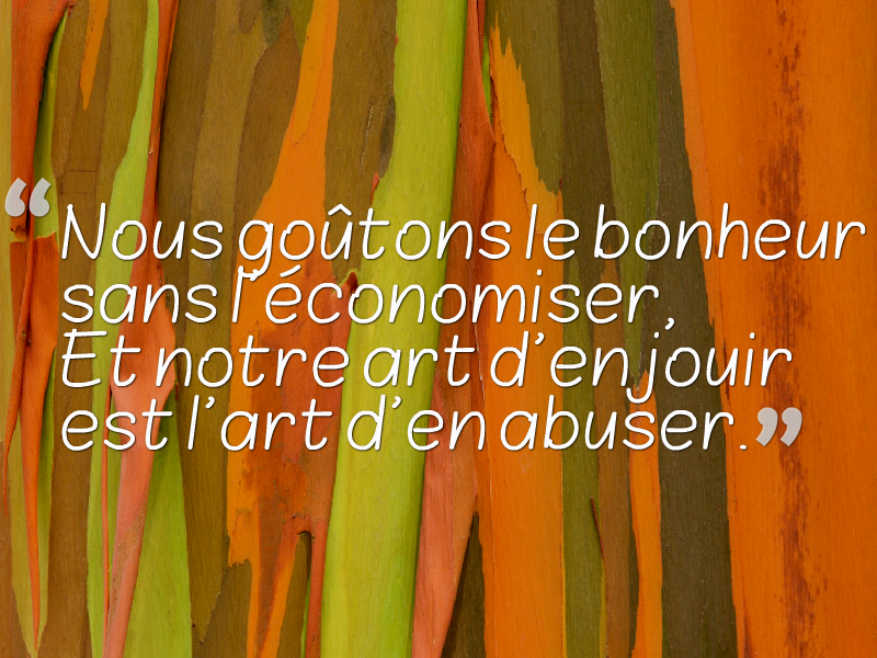 Nous goûtons le bonheur sans l'économiser, Et notre art d'en jouir est l'art d'en abuser.